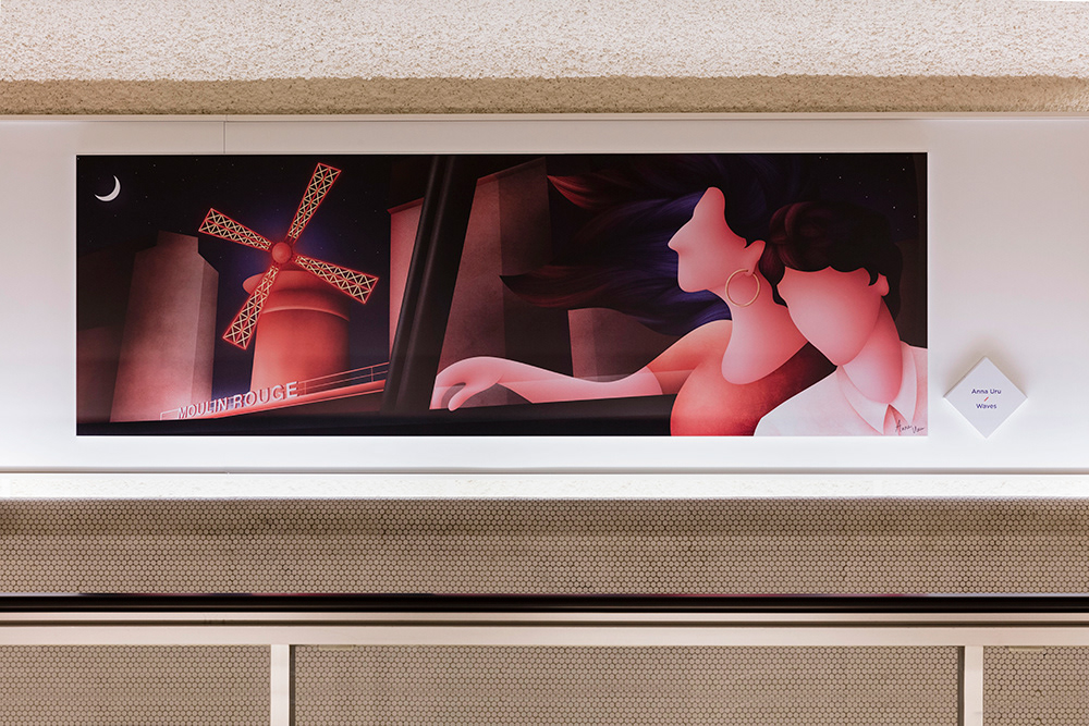 Commande de l'aéroport Paris-Charles de Gaulle d'une illustration de 3 m x 1 m pour l'exposition collective Une Fenêtre sur Paris. Visible dès le 19 septembre 2019, celle-ci réunit le travail de 20 artistes dans le Terminal 1, pour une durée de 2 ans. Scénographie de l'exposition : Agence Babel. Crédit photos : Zoo Studio pour Groupe ADP.