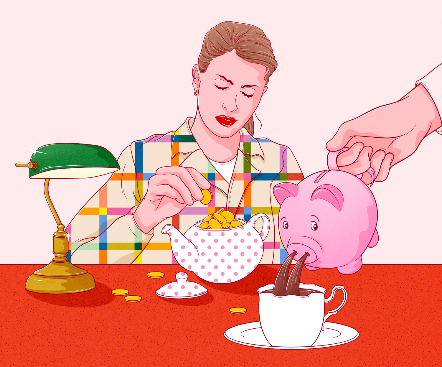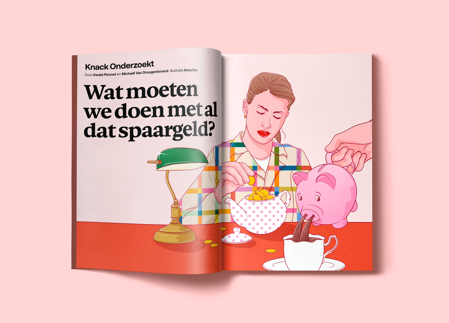 Illustration réalisée pour un article de l'hebdomadaire belge Knack, abordant la question de comment les Belges épargnent leur argent.